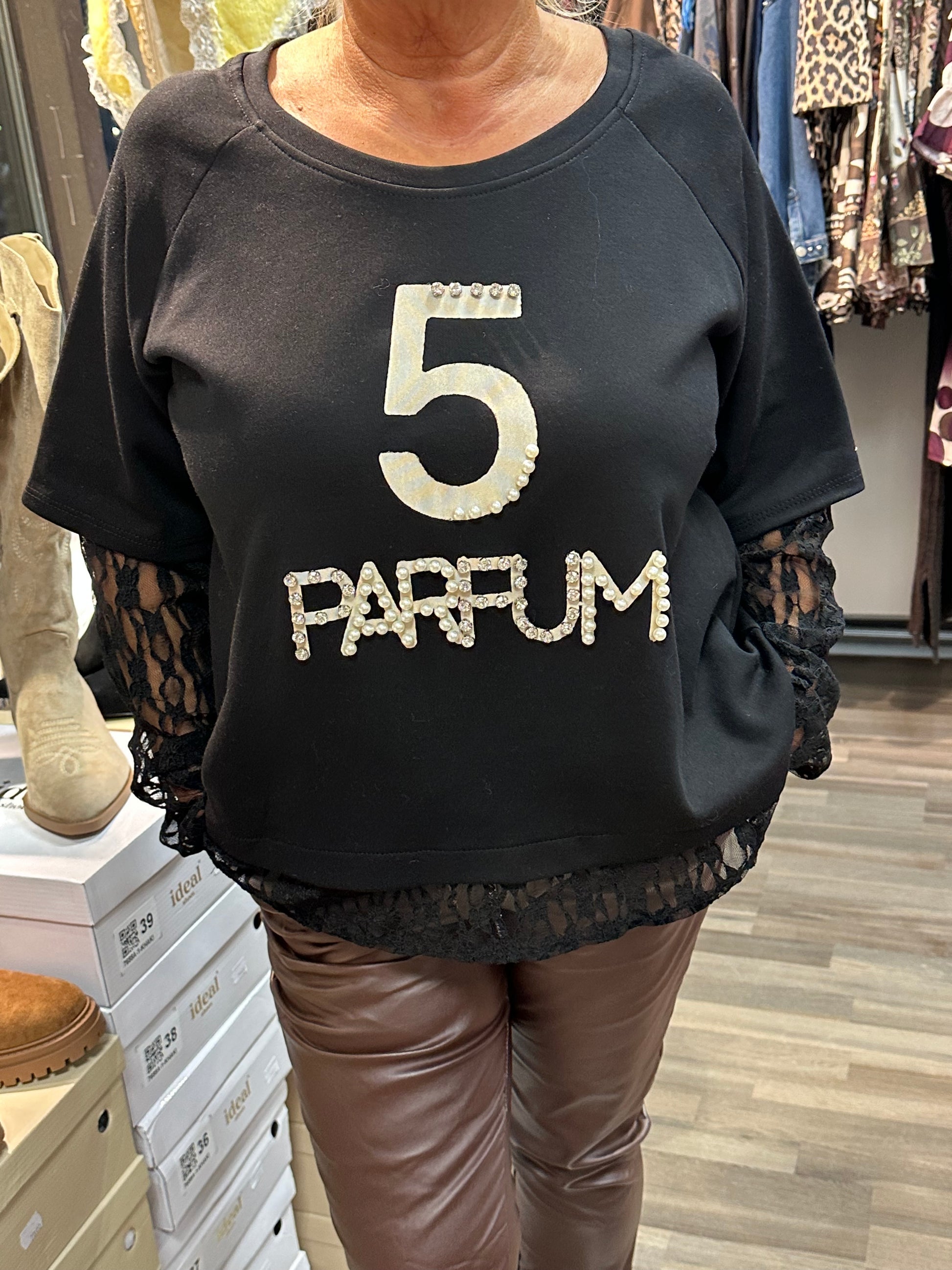 Makee puuvillainen t-paita pitsihihoilla ja helmalla! Tämä pusero myös hieman reilumpaa kokoa. Miellyttävää puuvillaa.