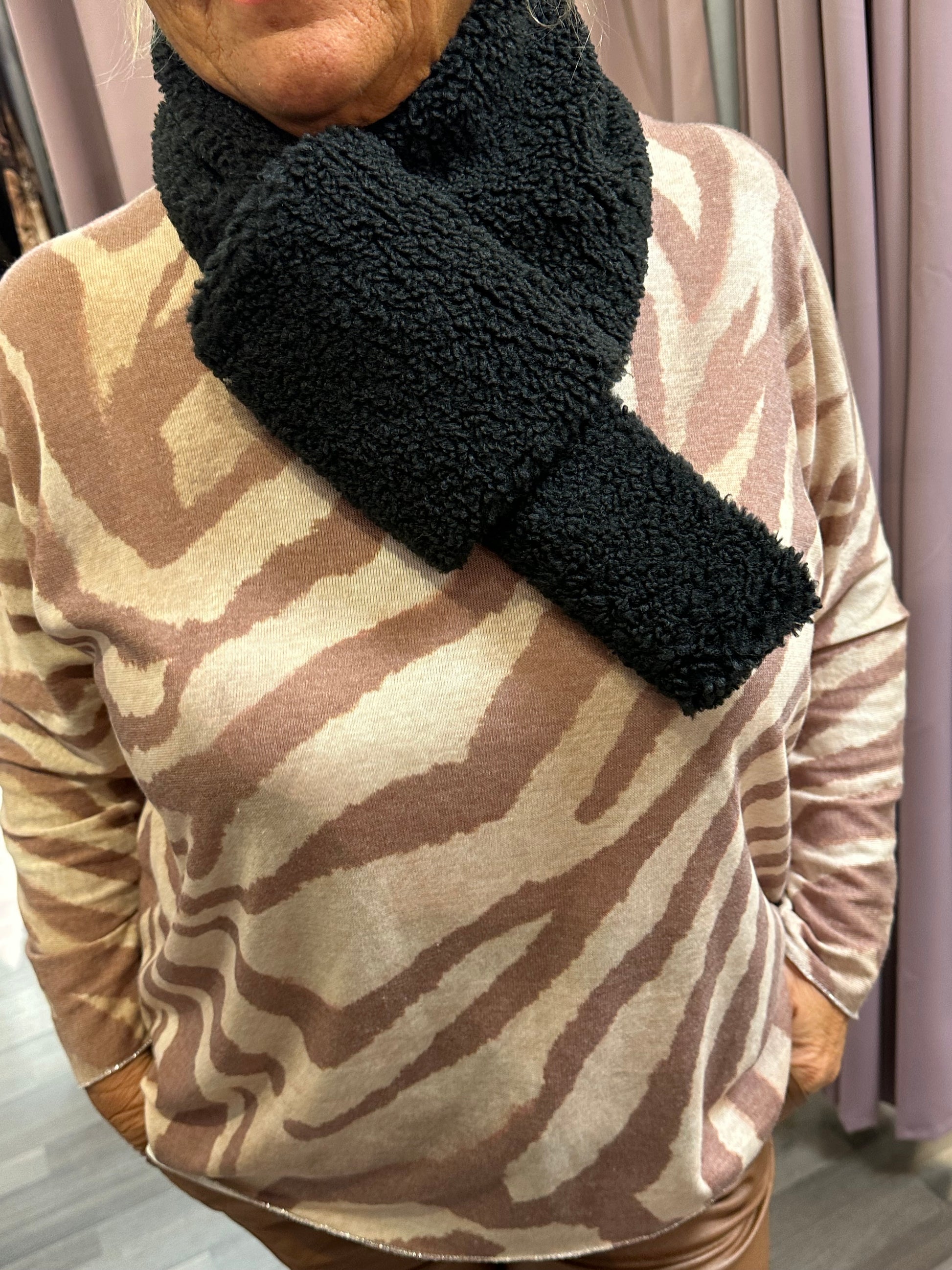 Hauska teddy huivi lämmintä ja pehmeää materiaalia.