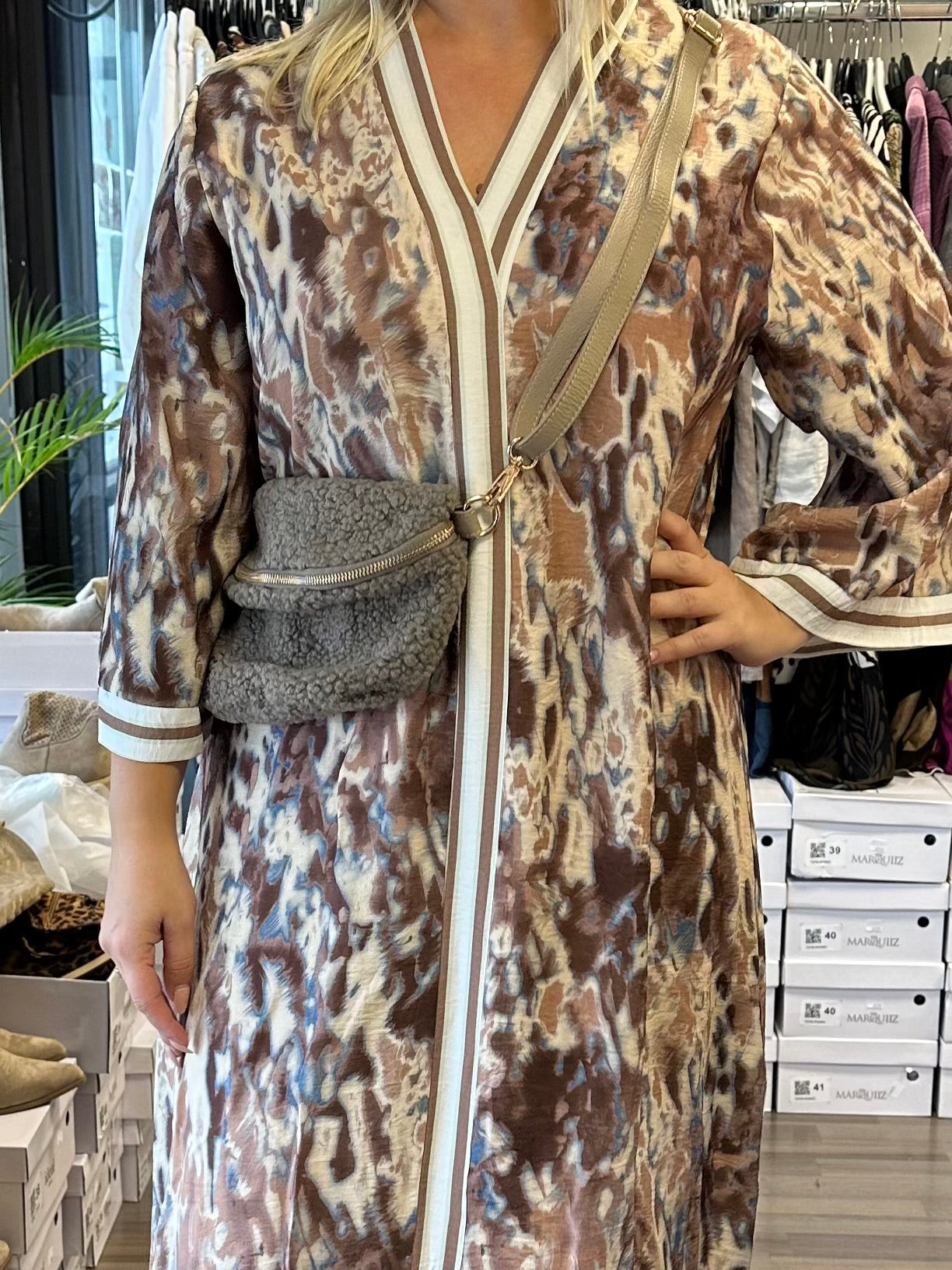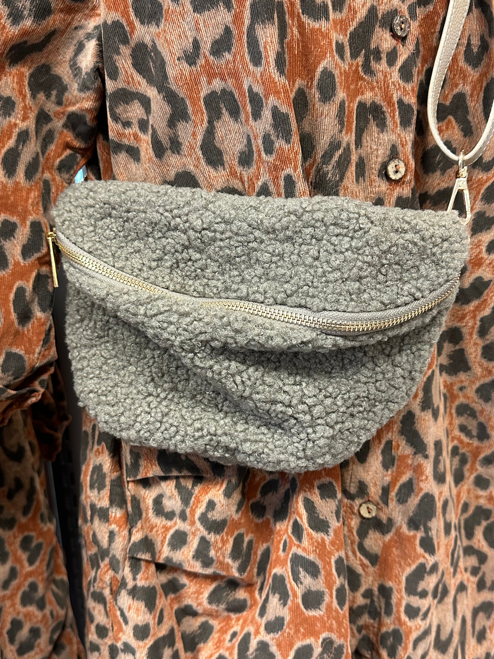 Pehmeä teddy olkalaukku vetoketjulla ja irrallisella olkahihnalla.