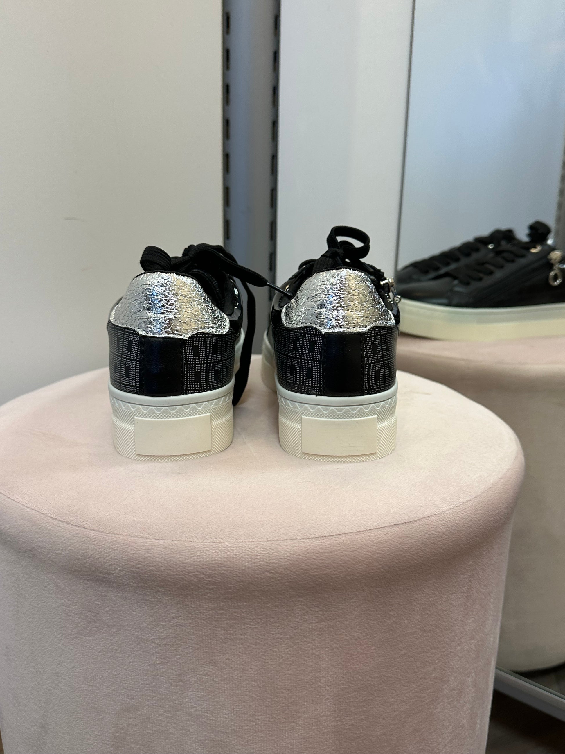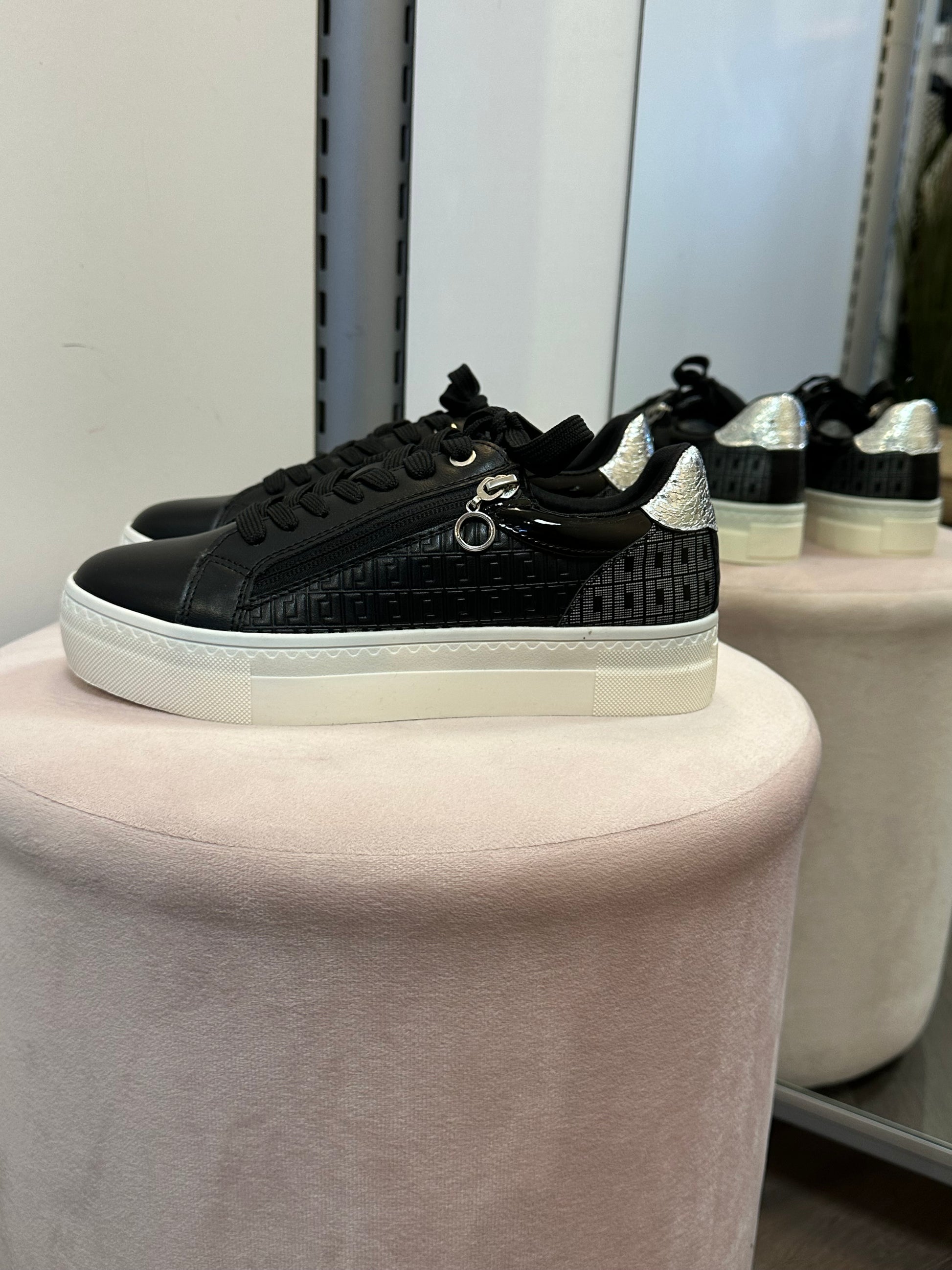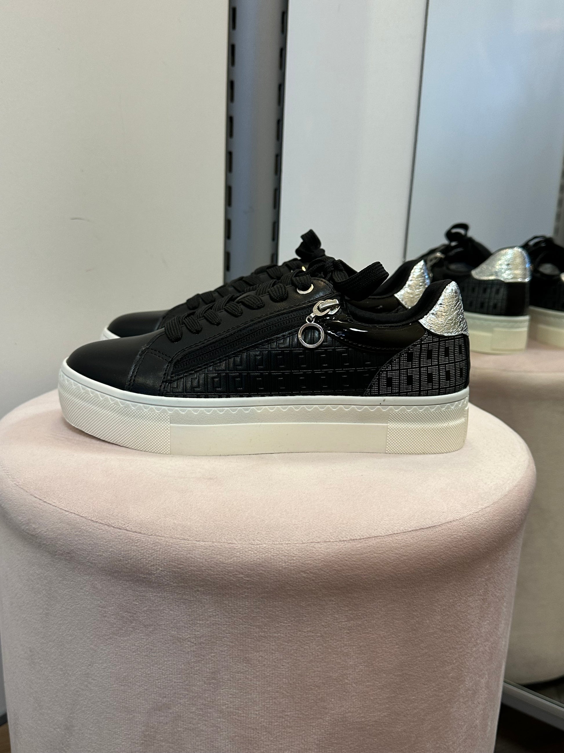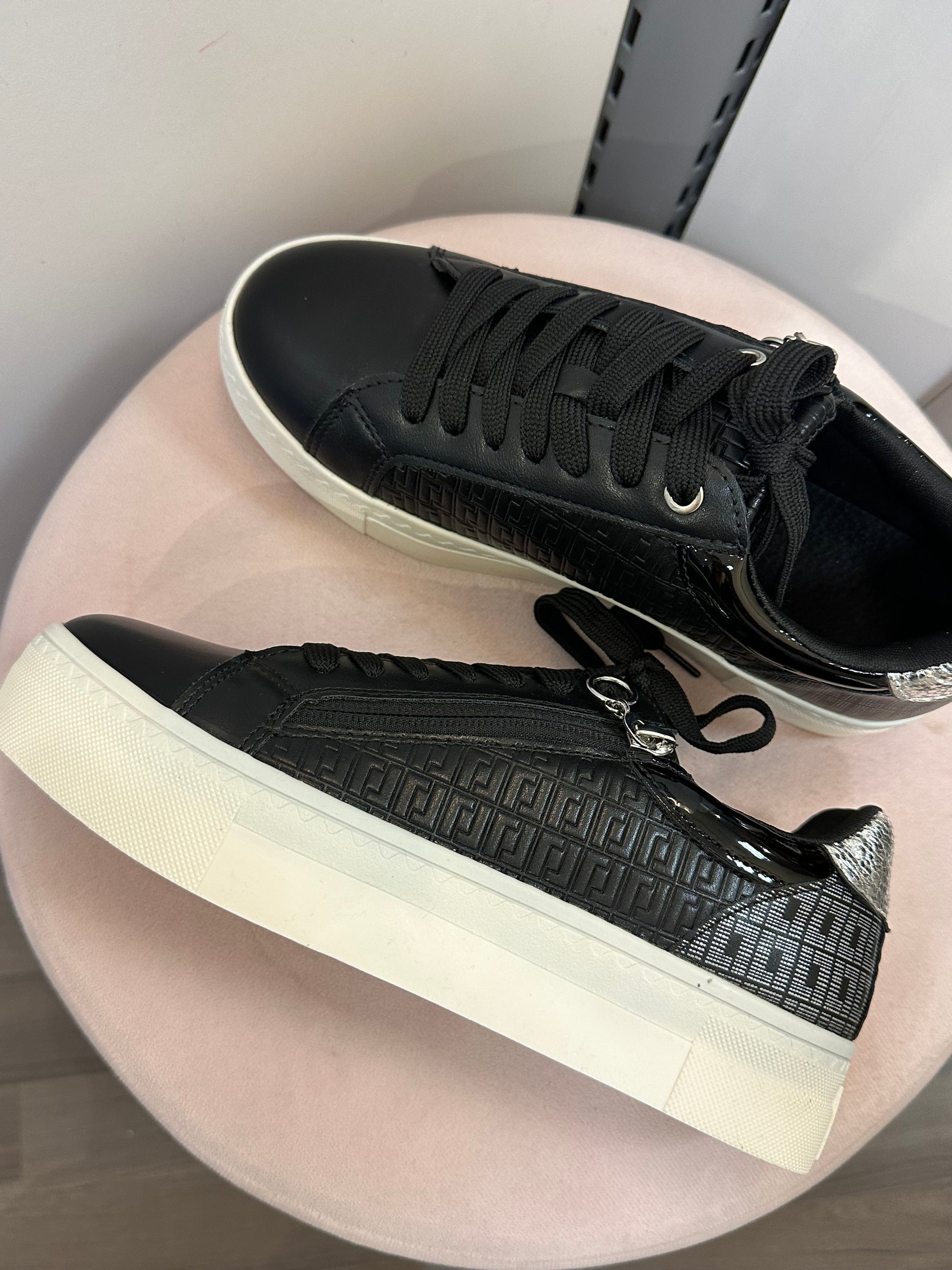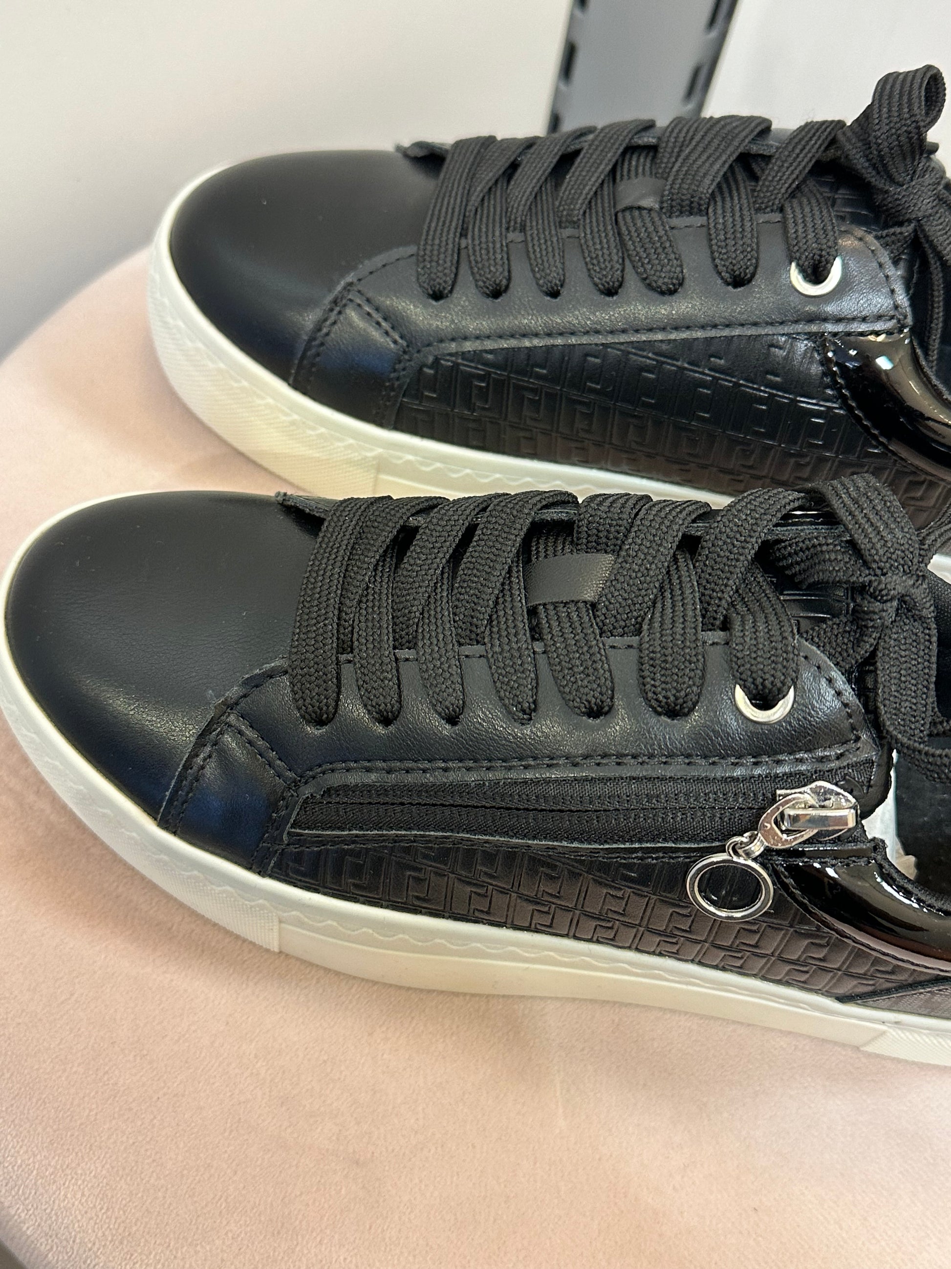 Tennarit keinonahkaa. Nauhat ja sivulla avattava vetoketju. Vastaa normaalia kokoa.
