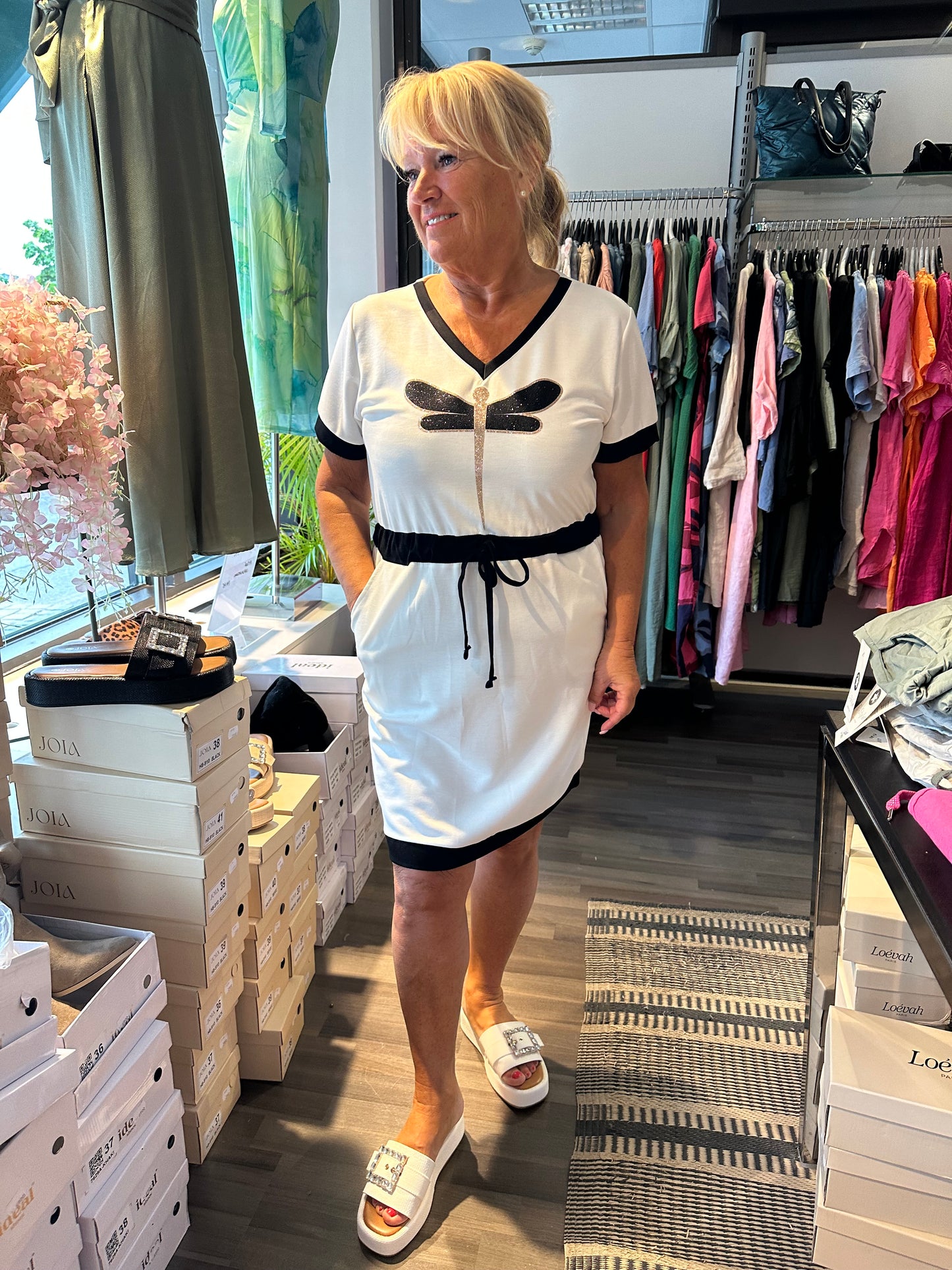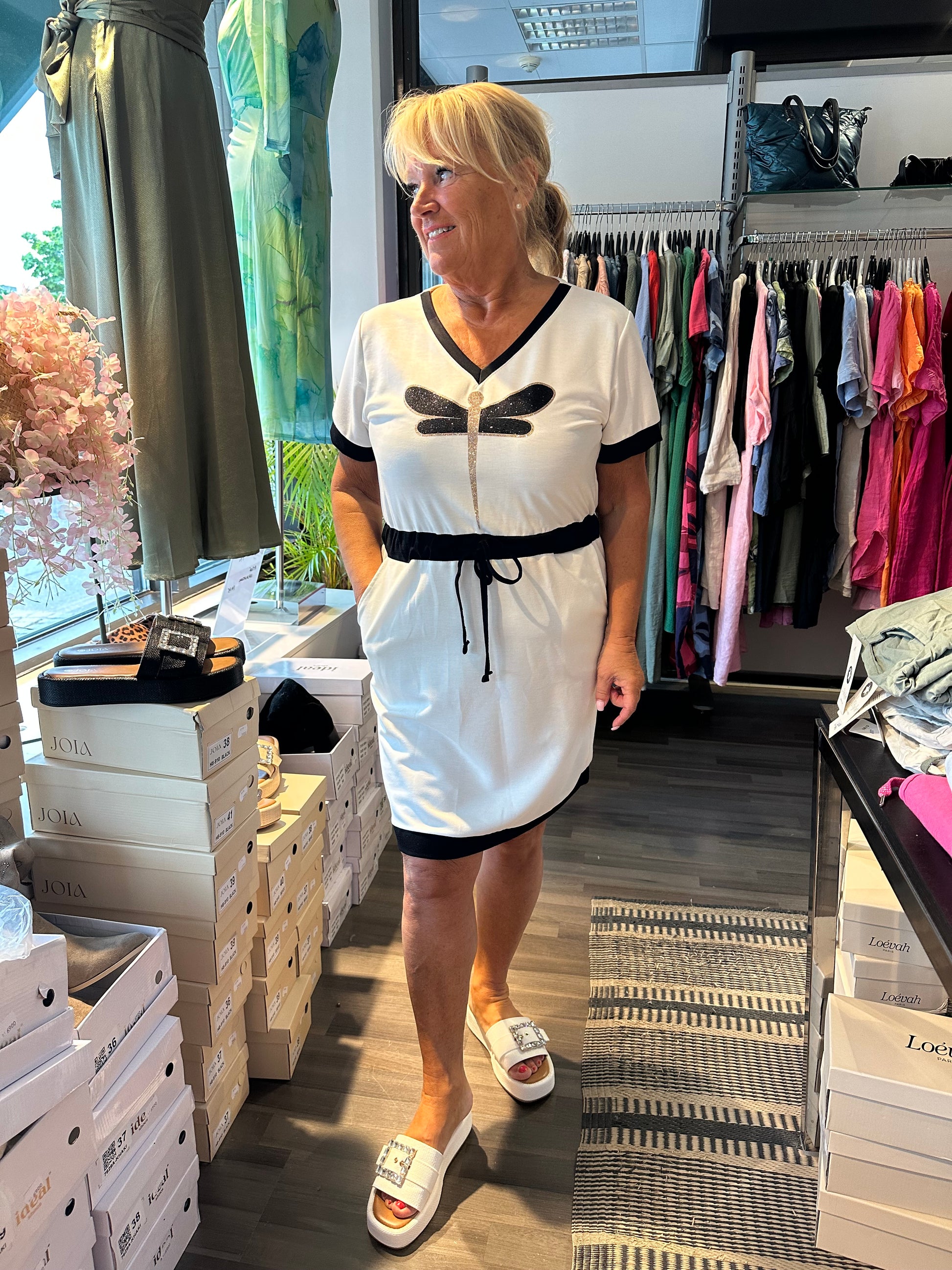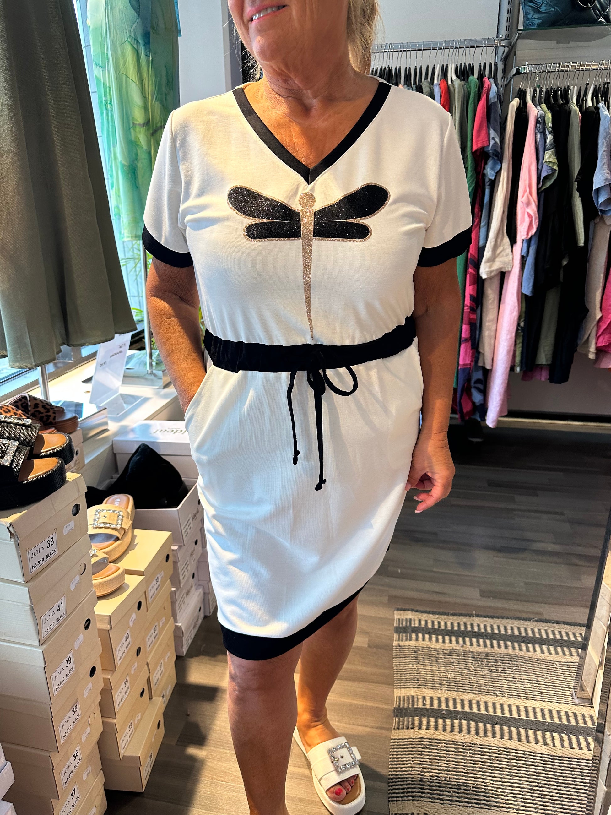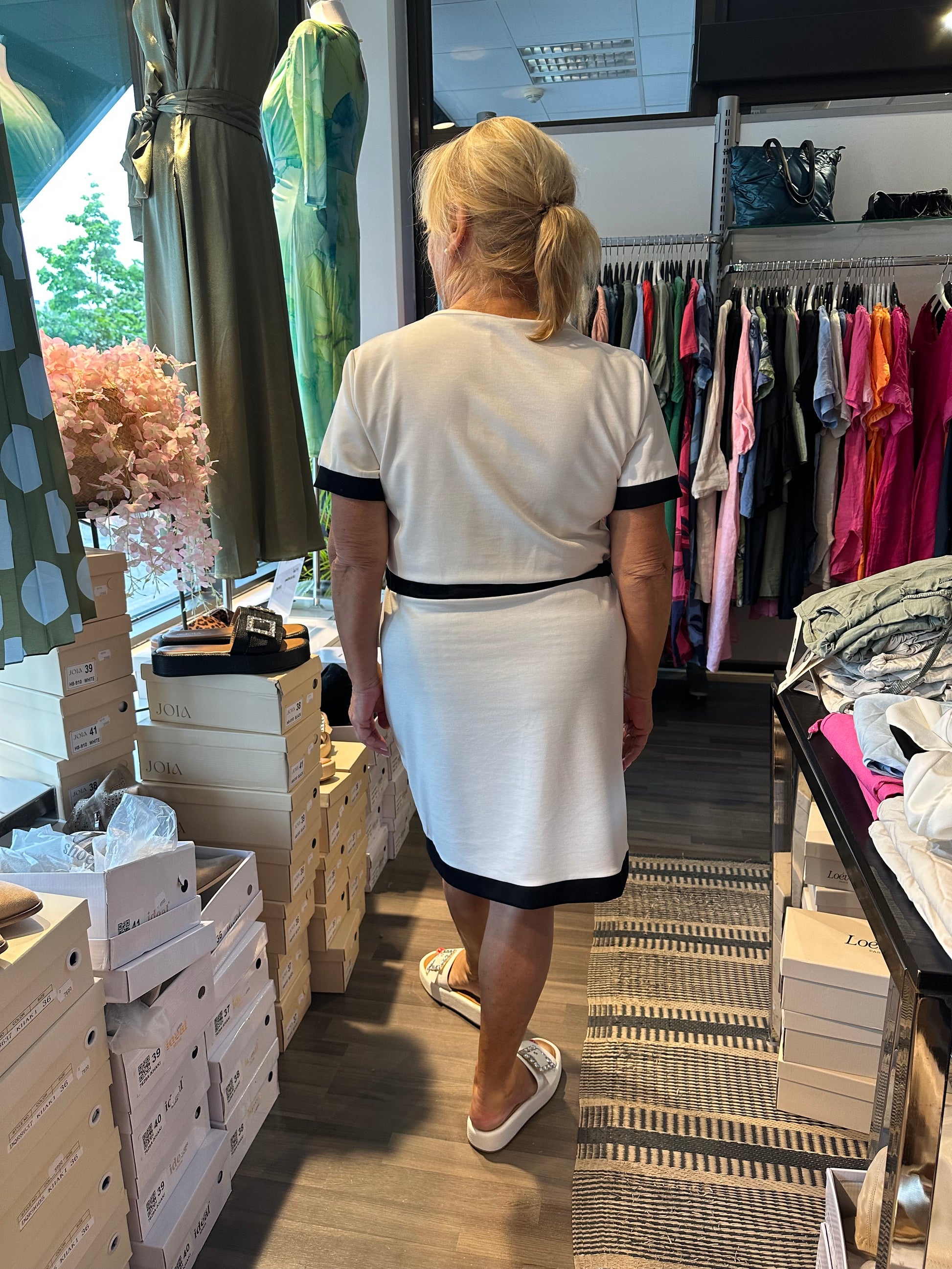 Kiva sporttisen oloinen trikoomekko. Joustava vyötärö nyörillä. Miellyttävän tuntuinen viskoosikangas.
