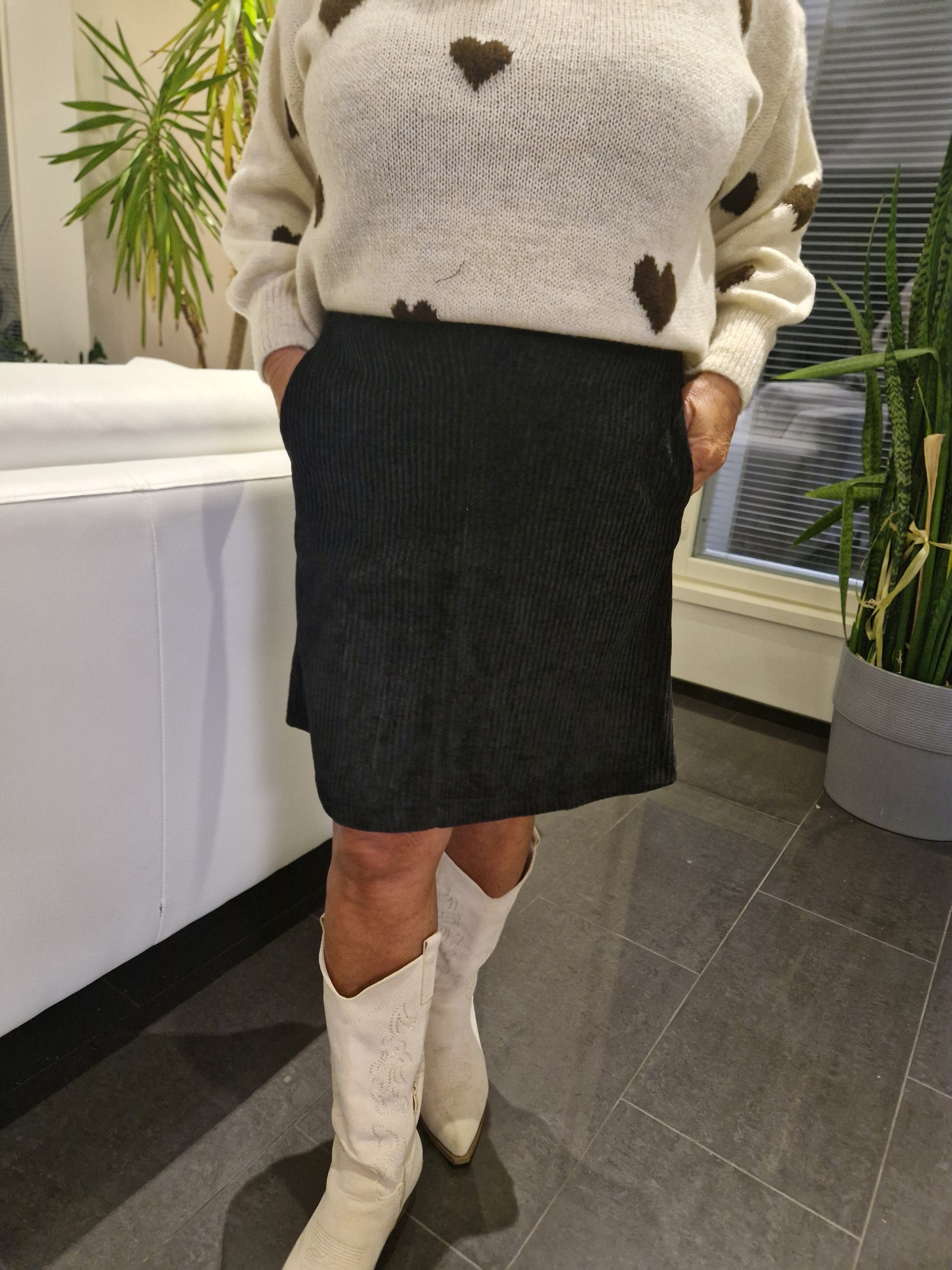 Ihana vakosamettinen minihame! Sivuilla taskut ja joustava kuminauhavyötärö.
