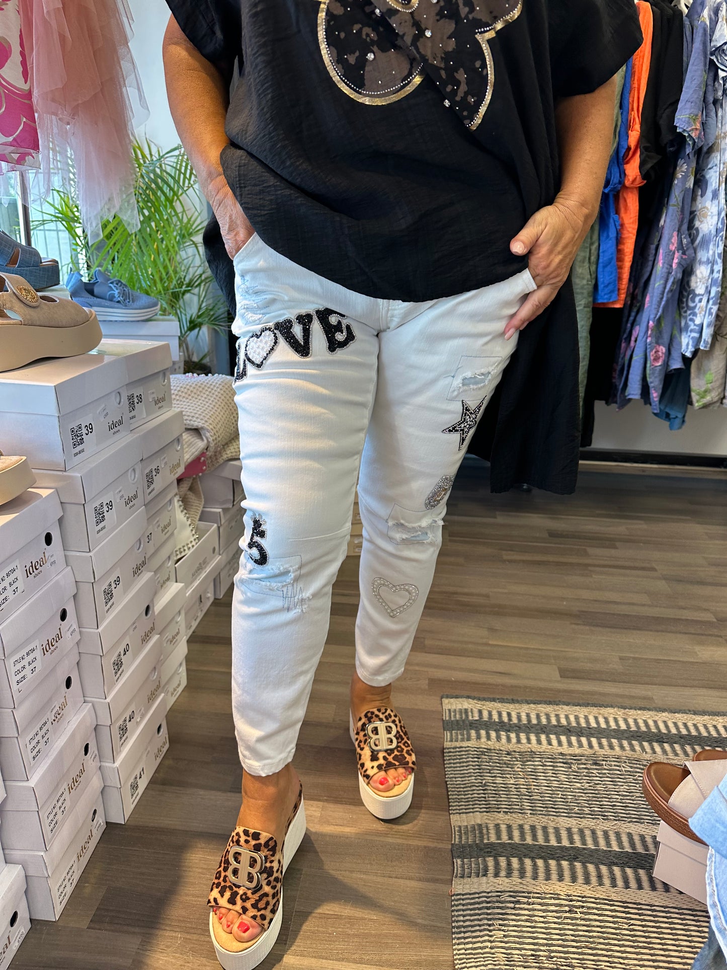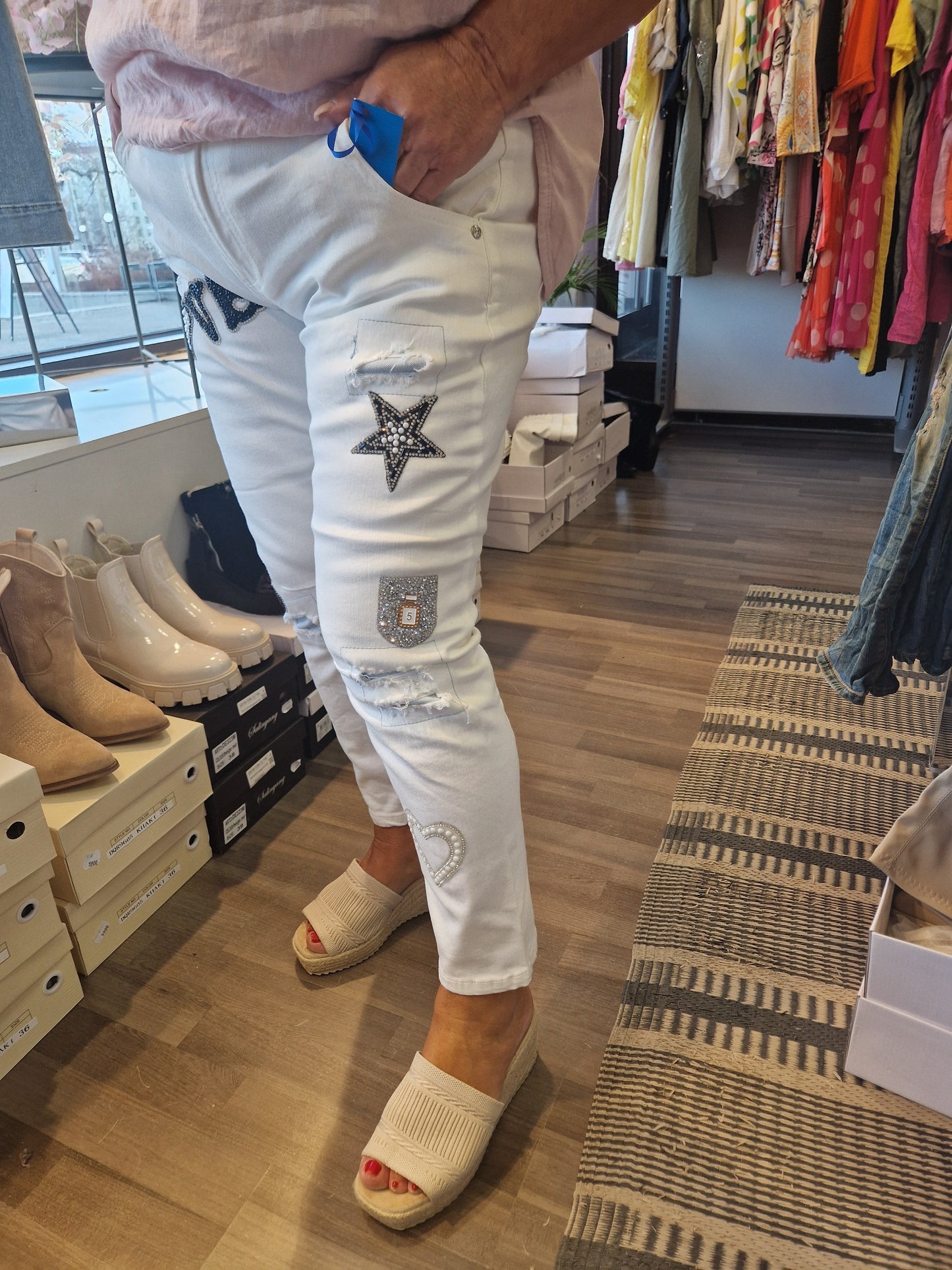 Valkoinen farkku blingeillä