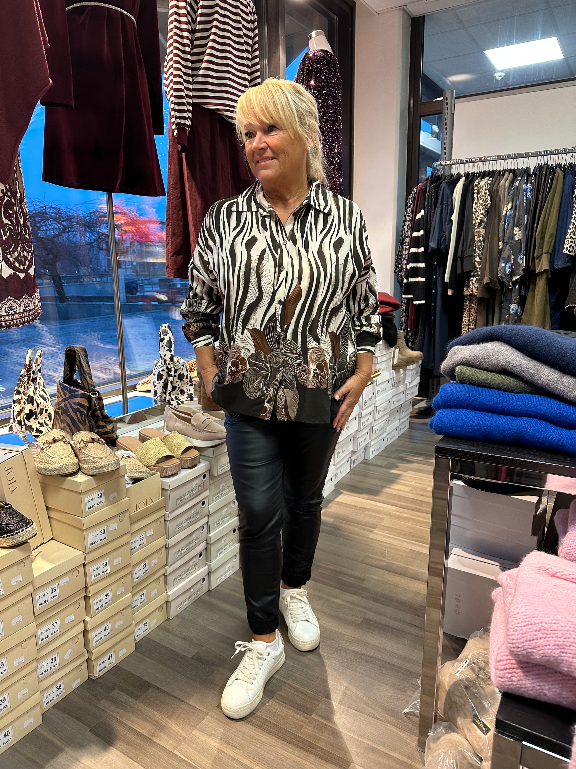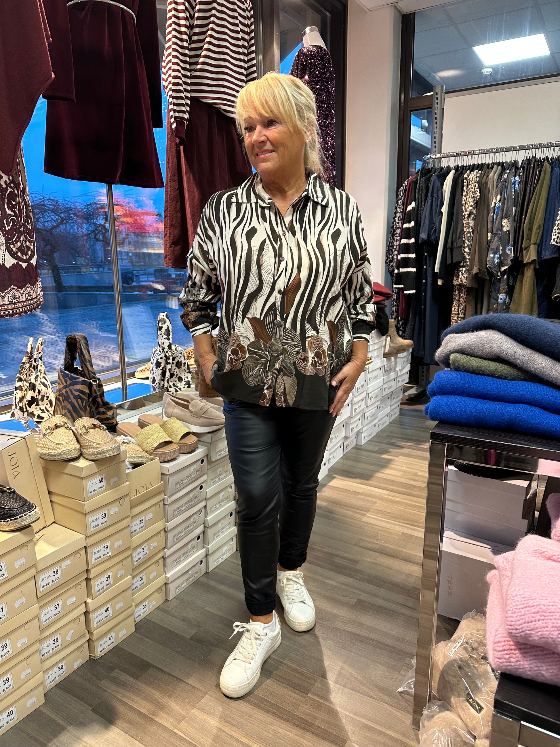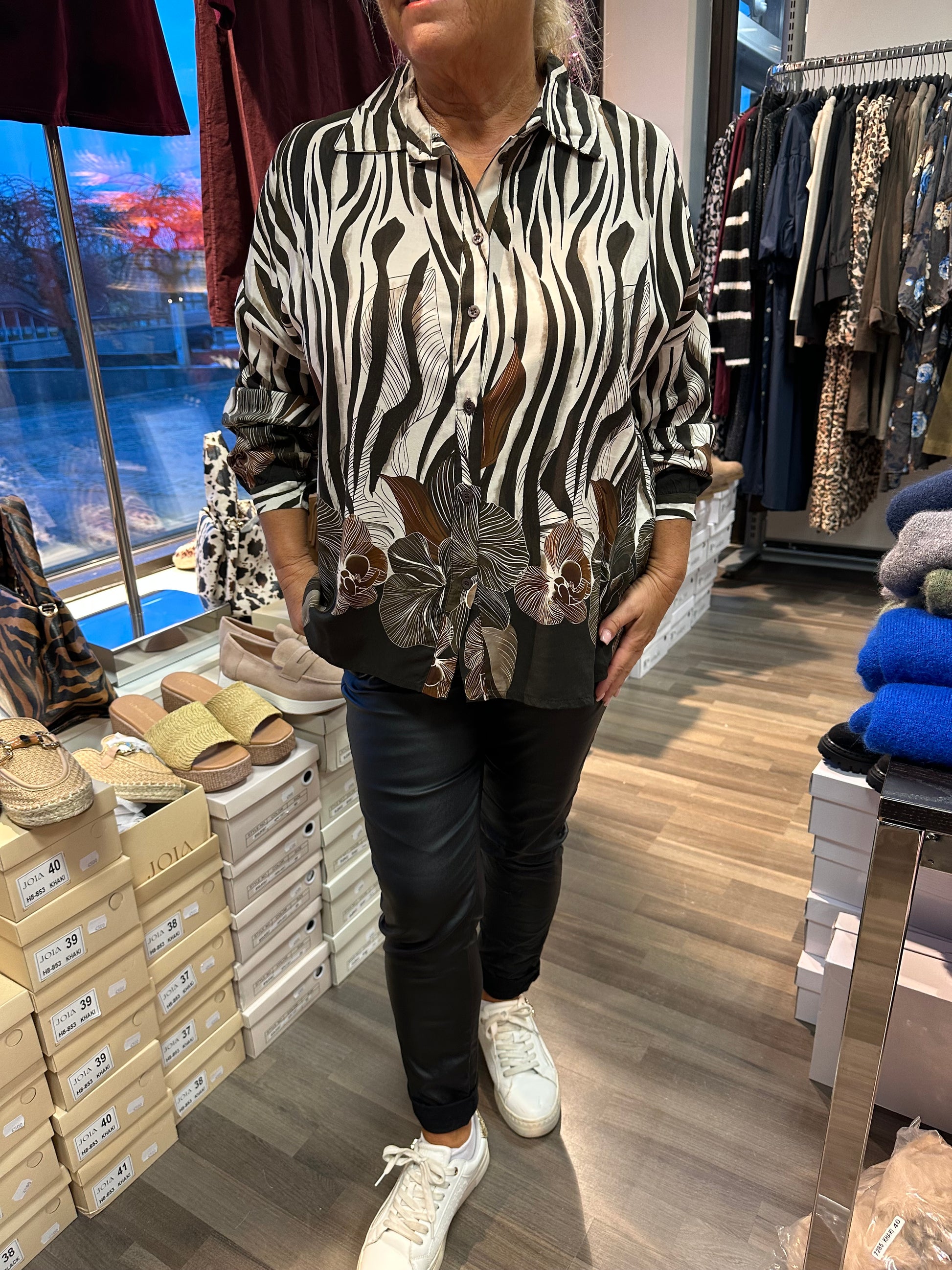 Kiva paitis viskoosikankaasta. Edessä napit koko pituudeltaan. Hihansuissa myös nappikiinnitys.